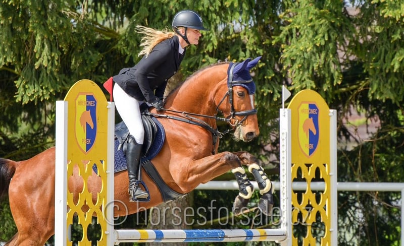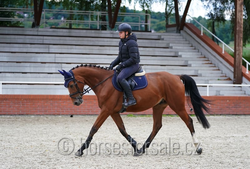 HEFFRON - small allrounder for all rings, safe and easy going, hunter prospect Heffron is a lovely little allrounder with nice brain, has been ridden by an amateur lady, has been shown in show jumping ring up to MT 0.90 so far, would also suit for hunter ring, his father is a very successful in hunter classes in Canada. Heffron is safe, easy going, not looky or spooky, has easy lead changes, is safe in the trail. Price: 12.000€ Sound, x-rays available. More information or videos under +420602862723. https://youtu.be/X7vwLWWOu-k https://youtu.be/Stfl4PQAHUI https://youtu.be/mti6TjZjdOw Born: 2021, height: 162cm, pedigree: Heartvit ZH (Heartbreak ZH) x Colato R Location: 1 hour from Prague, Czech republic. Central Europe. Transport can be provided. *** more horses on my website www.horsesforsale.cz ***
