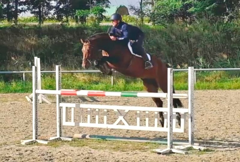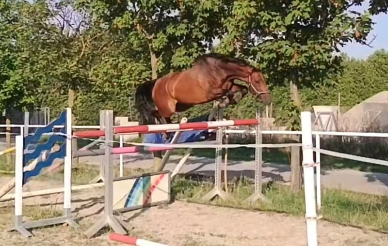 Zamożny 5-letni wałach o nienagannej charakterystyce. Łatwy do jazdy i absolutnie uroczy typ. Obecnie skacze bez trudu przez parkur o wysokości 120 cm z dużym zapasem. Ponadto jest bardzo ostrożny przy skoku - idealnie nadaje się jako koń dla dziewczyny. Samodzielnie wychodzi w teren, a także bezproblemowo znosi podkuwanie i załadunek. Jest towarzyski w stosunku do innych koni. Ma doświadczenie w zawodach. Aktualny przegląd weterynaryjny bez zastrzeżeń. Lokalizacja w pobliżu Wiednia w Austrii.
