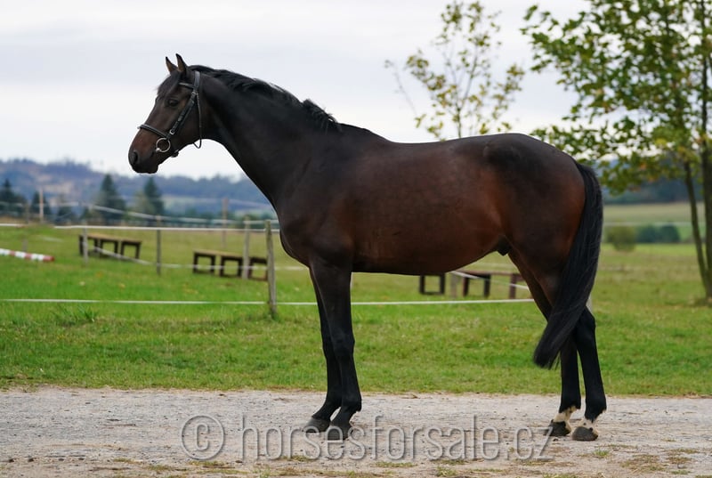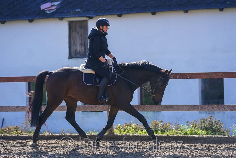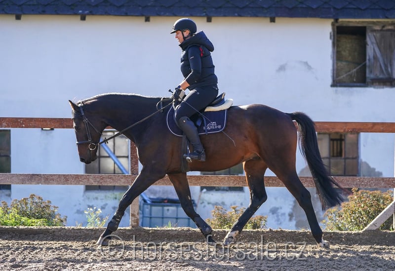 CANDYMAN - Allrounder mit perfekter Rittigkeit und sehr guter Bewegung Candyman ist ein sehr gutmütiges und leichtrittiges Pferd. Er hat seine Grundausbildung absolviert, ist sehr rittig, klar im Kopf und absolut unerschrocken, er macht auch beim Ausreiten Spaß. Vaterseits ist er dressurmäßig begabt, würde sich daher für den Dressurviereck bestens eignen. Mutterseits ist aber springmäßige Begabung vorhanden, also er könnte auch fürs Springen weitergefördert sein. Beim Freispringen zeigt er gute Technik, sowie tolle Einstellung. Er macht gerade erste Sprünge unter dem Sattel und macht es recht gut. Candyman kommt direkt vom Züchter, ist gesund, RTG-Bilder sind vorhanden. Er hat nach einem Unfall im Fohlenalter einen Befund am Rücken, es stört ihn aber keinerlei und kann problemlos ohne Einschränkung geritten werden. NEUER PREIS 10.000€, Mehr Infos gerne unter Tel.: +420 602 862 723 https://youtu.be/LYUMp-GyWmg https://youtu.be/GNTbpE2Bfs4 https://youtu.be/vPCaxXiwcZk Geb.: 2019, Stockmaß: 171 cm, Abstammung: Firestone (Johnson) x Landino Standort: 45 Minuten von Prag, Tschechien, Transport kann organisiert werden. *** weitere Pferde unter www.verkaufspferde.cz ***