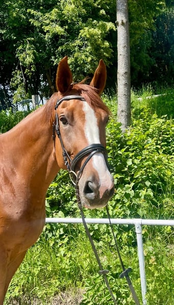 Leon ist ein wunderschöner und hervorragend ausgebildeter Fuchswallach nach Leonardo x Dantes x Aloube gezogen. Das knapp 1.80 cm große Pferd ist sehr einfach zu reiten und hat einen sehr großen Fun - Factor. Auch wenn der 2018 geborene Leon sicher als Springpferd bereits viel Erfahrung und Sicherheit mitbringt, so überzeugt er in der Dressur ebenso. Im Umgang ist der Fuchs sehr menschenbezogen und umgänglich. Leon ist der percfkte Allrounder Der Wallach ist top fit und geht derzeit barhuf. Weitere Infos und Videos gerne per WhatsApp oder telefonisch unter: 00436603632373 Standort: Pelmberg 15/ OÖ Besichtigung und Probereiten gerne nach Terminvereinbarung! Der Transport des Pferdes kann gerne übernommen werden
