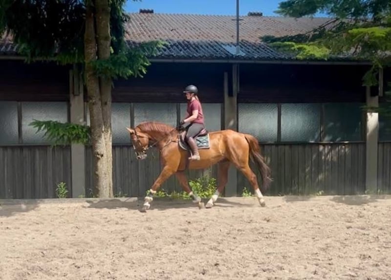 Leon est un magnifique hongre alezan, parfaitement dressé, issu de Leonardo x Dantes x Aloube. Ce cheval d'environ 1,80 m au garrot est très facile à monter et possède un véritable sens du plaisir. Bien que né en 2018 et déjà expérimenté en saut d'obstacles, Leon fait également ses preuves en dressage. En manège, cet alezan est très proche des gens et facile à gérer. Leon est le parfait cheval polyvalent. Le hongre est en excellente condition physique et monte actuellement pieds nus. Pour plus d’informations ou des vidéos, n’hésitez pas à me contacter par WhatsApp ou par téléphone au : 00436603632373. Lieu : Pelmberg 15 / Haute Autriche (OÖ) Visite et essais possibles sur rendez-vous. Le transport du cheval peut être organisé si nécessaire.