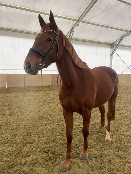 Really nice, correct and healthy 4 mare, clean Xrays. She did succesfuly test for 3yo in summer and went back to fields. Now she is back in training program and getting ready for her first season. She is pleasure to work with, learn fast and thanks to her nice balanced movement, great attitude and mindset has potential for big sport in the future. We have videos from freejumping and also riding. She is offered straight from the beeder