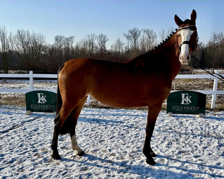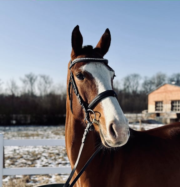 The cutest face you will ever meet! on the top she is extremely calm and easy! Getting ready to start her show career this year. Very “diesel” type of horse - push ride at the beginning. Thanks to her naturally calm temperament and great rideability she might be an interesting prospect for the hunter ring even for an AO in a program. Lead changes in progress. No vices, not mare-ish stuff at all, lovely on the ground. Xrayed. Located in Czech Republic, worldwide shipping is possible office@equikindly.com www.equikindly.com