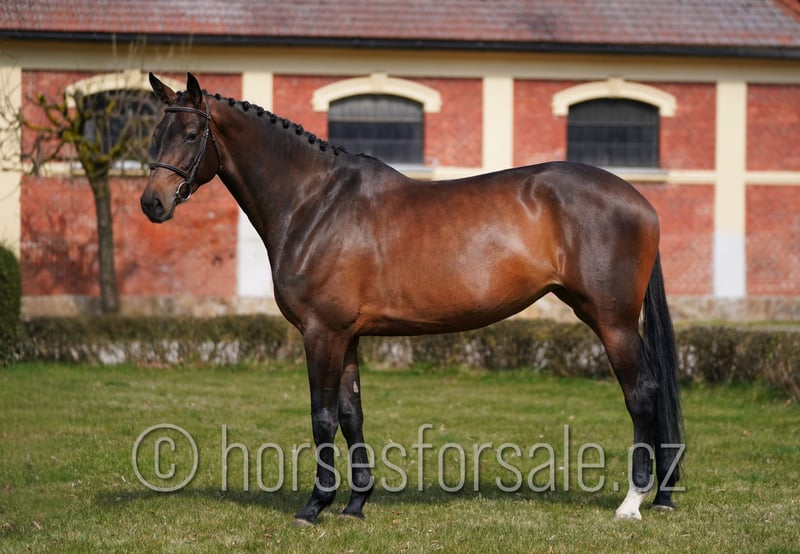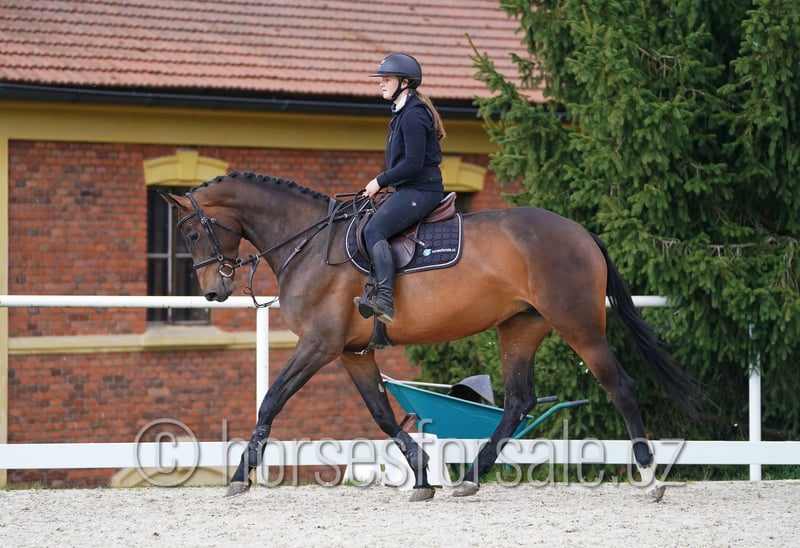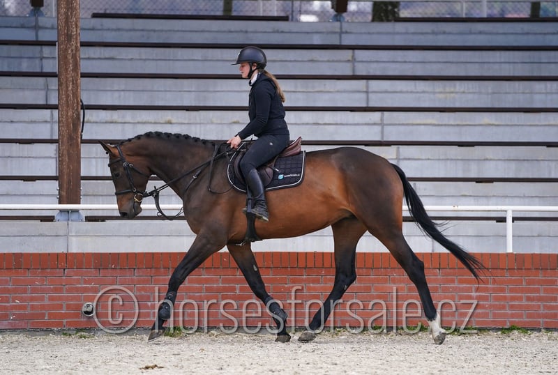 VALERIE - eye-catching mare with great jump and perfect brain, Diamant de Semilly x Voltaire Valerie is a beautiful mare for show jumping ring, has amazing jump, is of the best nature, always willing and motivated. She had a foal at the age of 4, in previous show season could she take part at several small shows and is ready for next sport season, doing at home a MT 1.00/1.10 course. Valerie is not mareish, not looky or spooky, would suit for amazons or amateurs. Current x-rays available. Price range under 30.000€, More information or videos under +420602862723 https://youtu.be/1tnCPy-YptM Born: 2020, Height: 172 cm, Pedigree: Diamant de Semilly x Voltaire Location: 1,5 hour from Prague, Czech republic, Central Europe. *** more horses on my website www.horsesforsale.cz ***