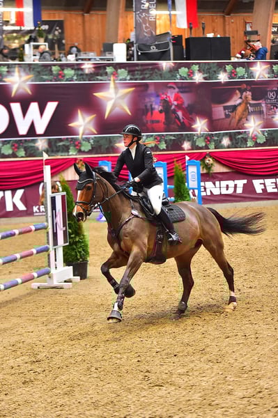 Very pretty and kind mare. She’s super fast and careful - ideal for someone who wants to take ribbons. Competed 110 cm, because owner just wants to have fun at a lower level. Scope for more. Even competed in eventing classes and even there she took lots of ribbons. Super strong in all three disciplines. Easy to handle, can be loaded in truck and trailer of one person. Owner always went to shows and training alone with her, so always nice to handle at shows as well. Only for sale as owner lost interest for the sport.