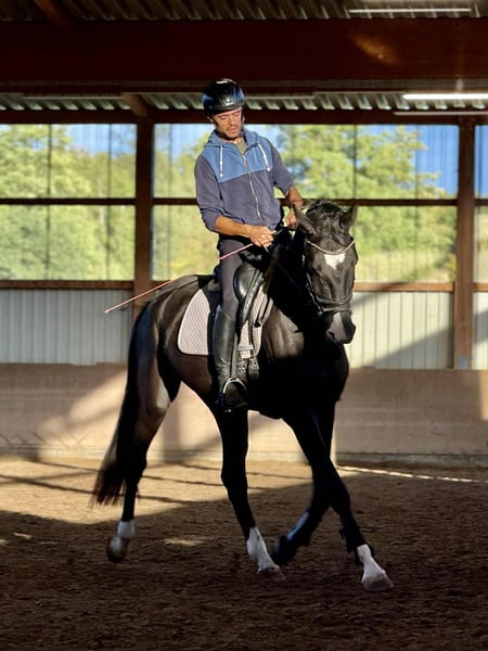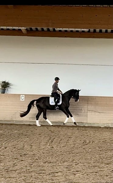 2021er Wallach | Blue Hors Farrell x Blue Hors Don Romantic | ca. 169 cm | Preis: 20.000 € – 30.000 € Sie suchen Ihren zukünftigen Dressurstar? Lernen Sie Rahpsy kennen – ein beeindruckender 4-jähriger Wallach mit hervorragender Abstammung und natürlichem Talent. Mit seinem modernen Typ, solider Grundausbildung und vielversprechenden Bewegungen ist Rahpsy ein Pferd, das für die große Arena bestimmt ist. ✨ Wichtige Highlights: * Herausragende Abstammung: Von Blue Hors Farrell, aus einer Blue Hors Don Romantic-Stute – eine bewährte Kombination für Dressurqualität. * 3 hervorragende Gänge: Elastische, ausdrucksstarke Bewegungen mit großem Schritt, aktiver Trab mit gutem Rhythmus und ein bergauf gerittener, bodenständiger Galopp. * Moderner Körperbau: Uphill-Statur, lange Beine, kompakter Körper und natürlich ausgeglichen, mit kraftvollem Hinterbein. * Ausgezeichnete Rittigkeit: Vorwärts orientiert, sensibel für Hilfen und zeigt bereits gute Balance und Selbsthaltung. Frühzeitig Talent für fliegende Wechsel. * Willig & lernbereit: Eifrig im Training, gibt stets sein Bestes. Für ambitionierte Amateurreiter oder junge Profis geeignet, die ein Top-Turnierpferd aufbauen möchten. 📌 Zusätzliche Infos: * Anfang dieses Jahres leicht eingeritten, danach Pause im Paddock – jetzt wieder im leichten Training, 3–4 Mal pro Woche geritten. * Gesund und fit – nie lahm oder krank gewesen. * Ok Röntgenbilder vorhanden. * Nur zum Verkauf, da Zeitmangel und andere Pferde hinzukommen.
