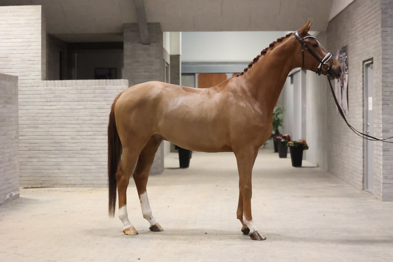 Really well moving and rideable 4 year old gelding for sale. Karat is an extremely rideable and well moving gelding, which you notice every time he enters the arena. He has the whole package to go all the way and you can particularly emphasize his good temperament. Ridden professionally for a little year. His father Kjento is a double world champion and grandfather De Noir has been a breeding matador for more than a decade.