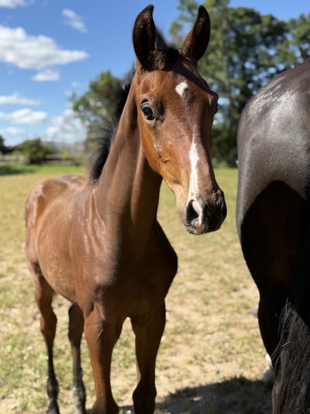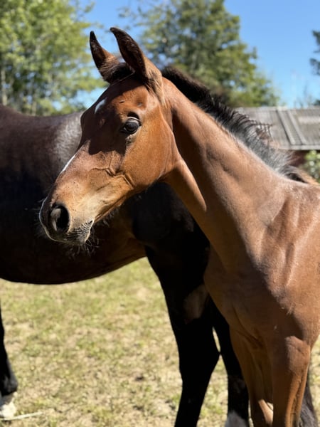 Poulain avec un pedigree exceptionnellement prometteur ! Vilhelm est moderne, bien proportionné, avec de belles lignes, une expression agréable et beaucoup de mouvement. Il a été présenté lors du concours foal à Vilhelmsborg, où il a obtenu les notes suivantes : Type/structure : 8 Tête/nuque : 8,5 Épaule/avecers : 7,5 Ligne du dessus/hanches : 8 Jambes antérieures : 8 Jambes postérieures : 7,5 Pas : 8,5 Trot : 8 Galop : 7,5 Impression générale : 8 Il est par Blue Hors Viva Vegas et d'une mère par Quaterhit, avec Fürstenball et Blue Hors Romanov en arrière-plan dans la lignée maternelle. Avec Vilhelm, vous obtenez le compagnon idéal et un cheval de selle d'élite pour l'avenir — il possède un tempérament exceptionnellement doux et une grande envie de travailler ! Vendu directement par l’éleveur, Gunnar Bennetsen Contactez Rikke sur WhatsApp : +45 42197940