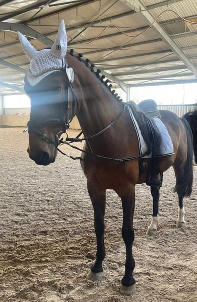 Our lovely mare is a motivated and reliable show jumping horse that confidently and with plenty of go clears every obstacle. She is ideal for ambitious leisure riders seeking an enthusiastic partner for jumping. She also makes a perfect teacher, executing secure flying changes and currently competing successfully at Level A. She has been with us for three years, but unfortunately, we haven't developed the team dynamic we hoped for. Therefore, we are now looking for someone who is a better match for her. Health: Two years ago, she had a hoof cancer which has fully healed. Since then, she has been healthy and fully capable of work. She is insured for surgery and has no limitations in this regard. Her back was checked with an MRI in 2025—everything is top-notch and clear. She is not suitable for beginner riders. Suitable for: Gentle hands and a home with plenty of turnout. In 2021, she had a healthy foal, which is now being backed. Therefore, breeding with her remains an option. Equipment: If interested, we are happy to include her saddles, which were purchased new and fitted specifically for her. Please feel free to contact us with any questions! Videos, including jumping footage, are available upon request.