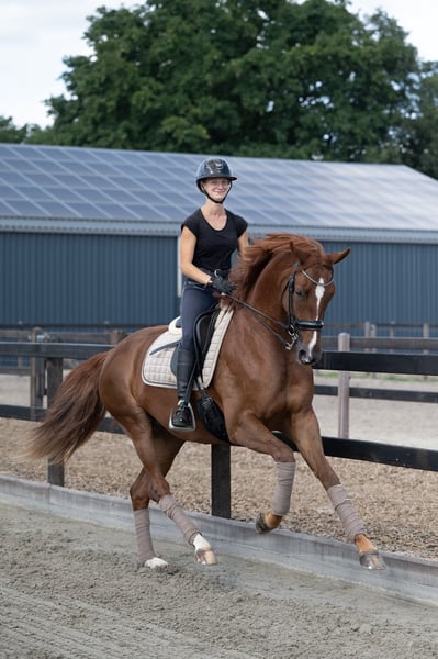 legante 6-jarige Deens Warmbloed merrie met bovengemiddelde bewegingskwaliteit Deze elegante 6-jarige Deens Warmbloed merrie beschikt over bovengemiddelde beweging in alle drie de gangen, gecombineerd met een fantastisch karakter. Een zeldzame kans voor ambitieuze (amateur) dressuurruiters die op zoek zijn naar kwaliteit, maar een kleiner budget hebben. Achtergrond Summer Bird werd als drachtige merrie door een investeerder bij de fokker gekocht. Ze heeft twee veulens gebracht, beide met zeer elastische en indrukwekkende bewegingen. Daarnaast is ze opgenomen als RDH bij het Danish Warmblood stamboek. Na haar fokcarrière is ze door een jonge paardenruiter zadelmak gemaakt en heeft ze vervolgens ruim een jaar in professionele training gestaan, waarin ze zich uitstekend heeft ontwikkeld. Karakter & Training Summer Bird is getraind op Z-niveau (zie video’s). Haar bewegingen zijn werkelijk overtuigend: een uitzonderlijk ruime, zuivere en ontspannen stap, een krachtige draf met een sterk en actief achterbeen en een zeer goed gebalanceerde galop. Onder het zadel zit ze comfortabel en heeft ze een fijne werkinstelling. Ook haar karakter maakt haar bijzonder aantrekkelijk: lief, mensgericht, fijn in de omgang en ongecompliceerd op vreemd terrein. Ze loopt makkelijk op de trailer, reist goed en is sociaal met andere paarden. Opmerking (röntgen) Afgelopen najaar werd Summer Bird verkocht voor een hoge prijs, maar röntgenfoto’s (juni 2024) toonden een verkalking in beide voorbenen. Nieuwe röntgenfoto’s van september 2025 laten een duidelijke verbetering zien, al is de opmerking nog aanwezig, waardoor de verkoop destijds niet kon worden afgerond. Een recent klinisch onderzoek met aanvullende scans van de voorbenen (november 2025) toont aan dat Summer Bird klinisch in goede conditie is. Haar volledige geschiedenis is bekend en er zijn geen verdere opmerkingen op de röntgen, inclusief hals en rug. Vanwege deze bevinding is de prijs meer dan drie keer verlaagd ten opzichte van de eerdere vraagprijs. De eigenaar is gemotiveerd om te verkopen — hierdoor is dit een uitzonderlijke kans voor ruiters met een beperkter budget die tóch kwaliteit willen. Interesse? Summer Bird staat volledig in training en is beschikbaar voor bezichtiging. Locatie: Lunteren (NL) Contact: Natasja Stienstra – Dressage Together WhatsApp: +31 6 1852 1667
