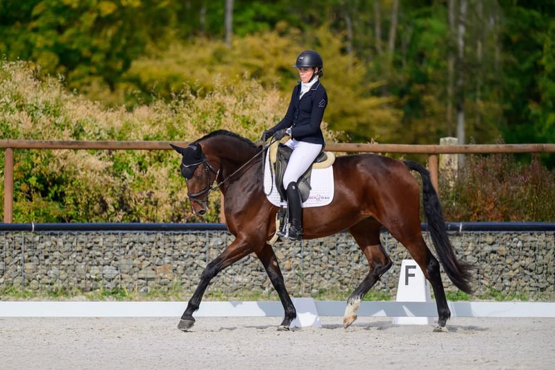 La Carebisa is gently prepared 6yo mare, always ridden by girl. In 2025 she achieved 2wins and 2second places out of 4starts in dressage tests. She was also educated in showjumping directon and competed up to 100cm with nice rounds. Thanks to her nice movemet and willingnes to work she is recomended for dressage sport but can go both. She has no bad habits- is easy in all ways, great friendly attitude, pleasure to work with. She is offered straight from the breeder.
