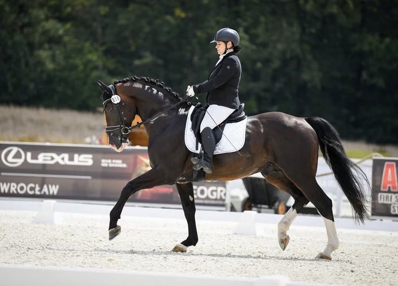 10 letni wałach śląski w nowoczesnym typie, łączący świetny charakter z predyspozycjami sportowymi. Startował w klasie C, aktualnie pracuje na poziomie CC z elementami Grand Prix, piaff oraz pasaż które wykonuje z dużą lekkością. Koń idealny dla juniora lub osoby rozpoczynającej starty w zawodach. Doświadczony, ostartowany „koń profesor” doskonały do wprowadzenia w świat ujeżdżenia. Bardzo przyjemny do jazdy. W transporcie oraz w codziennym obejściu całkowicie bezproblemowy. Typ „misia” bardzo lubi kontakt z człowiekiem i chętnie współpracuje. Aktualny TUV do wglądu.