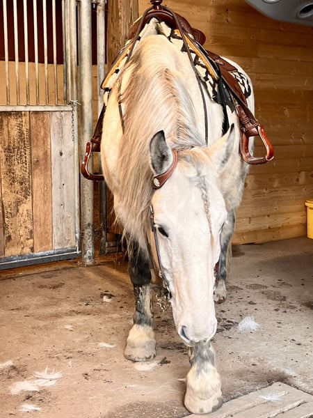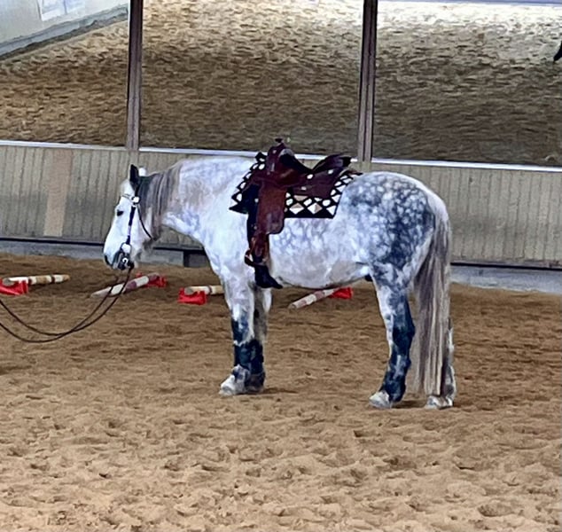 Für meinen Lino, ein bildhübscher 10 jähriger Wallach ( wird im März 11 Jahre) suche ich einen Bestplatz. Lino ist ein intelligenter und aufgeweckter Kerl mit viel Power und Freude an der Arbeit unter dem Reiter und bei der Bodenarbeit. Derzeit wird er von einer guten und einfühlsamen Reiterin im Bereich Westernreiten trainiert. Sie hat auch bereits viele Trainingseinheiten in der klassischen Reitweise mit Lino perfekt absolviert. Lino ist im Gelände und in der Halle geritten. Er geht alleine oder in der Gruppe gerne ins Gelände. Wie schon gesagt, er hat power und ist keine Schlaftablette und benötigt daher einen erfahrenen Reiter. In der Reithalle macht er alles problemlos und motiviert mit. Natürlich hinterfragt er schon mal, ob der Reiter es wirklich ernst meint. Lino hat ein Stockmaß von 1.63 m und einen rahmigen Körperbau. Er hatte bisher keinerlei gesundheitlichen Probleme und ist top gesund und robust. Er läuft ohne Hufeisen und hatte auch hier keine gesundheitlichen Probleme. Er steht bei mir in einer kleinen gemischten Gruppe im Offenstall. In reine Boxenhaltung wird er nicht verkauft. Er sollte wieder in einen Offenstall oder Box mit großem Paddock kommen. Er kann natürlich auch gerne bei mir im Offenstll eingestellt bleiben. Kann man alles besprechen. Lino hat erst vor einem 3/4 Jahr einen top Westernsattel der Marke Deuber & Partner, Flexfix Vario, bekommen (Neupreis ohne Zubehör 4.278.-€, Rechnung und Sattelpass vorhanden) Der Westernsattel (Zubehör wie Fellsattelgurt von Mattes und Sattelpad etc. ist im Preis dabei) kann mit übernommen werden, zu einem Preis von 3.500.-€ Mir ist wichtig, dass Lino auch in Zukunft einen perfekt sitzenden Sattel hat. Wahlweise kann auch sein Dressursattel der Marke Bates dazu erworben werden. Der Bates Sattel ist ebenfalls in einem top Zustand und preislich liegt er bei 1.600.-€ inkl. Zubehör wie Sattelgurt etc. Bei Fragen vorab bzw. zu einer Terminvereinbarung stehe ich gerne per Mail zur Verfügung. Für‘s Probereiten erhebe ich eine Gebühr von 40-€ Ein Probereiten ist auch nur bei echten Interesse möglich. An Händler und Schulbetriebe wird er nicht verkauft