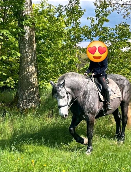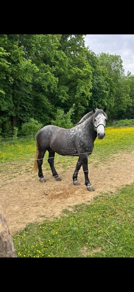 Hallo, ich bin ein schöner und lieber schwerer Warmblut/ Kaltblut Wallach und habe mitte September erst meinen 5. Geburtstag gefeiert. Ich hab ein auffälliges Apfelschimmel-Fell und 162cm Stockmaß. Ich habe bereits erste Erfahrungen unter dem Sattel gesammelt und war auch schon vor ner Kutsche eingespannt. Ich denke ich könnte mit etwas Vorbereitung auch gut in Festzügen mitlaufen. Ausreiten finde ich toll. auch alles andre lerne ich schnell, bin interessiert und motiviert,ein echter Kumpeltyp eben! Ich suche eine Person, die viel mit mir macht da ich Menschen mag, und Kinder mag ich auch. Mädels +Frauen verfallen sofort meinem Charm! Auch mit andren Pferden komme ich gut aus. Es gibt auch paar Videos von mir auf Anfrage für diejenigen, die auch wirklich am Kauf interessiert sind. Also wenn du ernsthaft an mir interessiert bist, dann melde dich. Alles weitere dann telefonisch. Der Preis ist ein Festpreis. Bitte kein Verhandeln, keine Ratenzahlung
