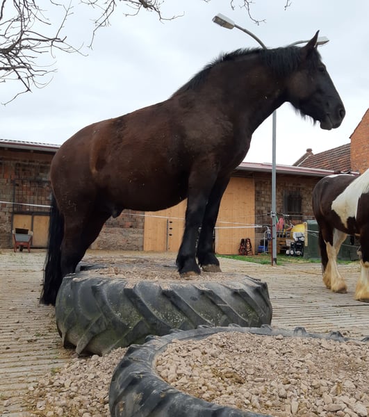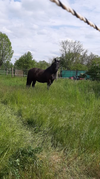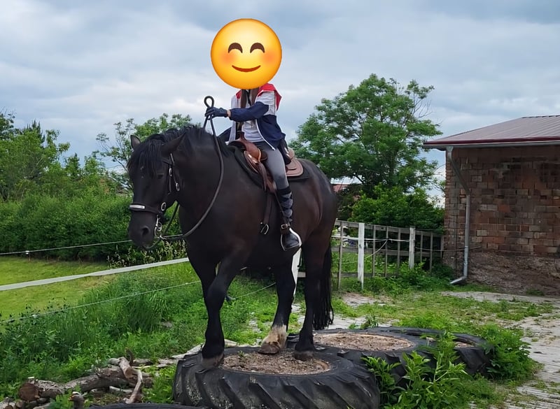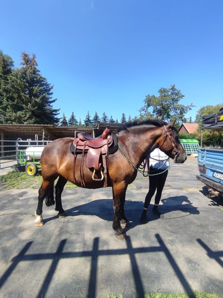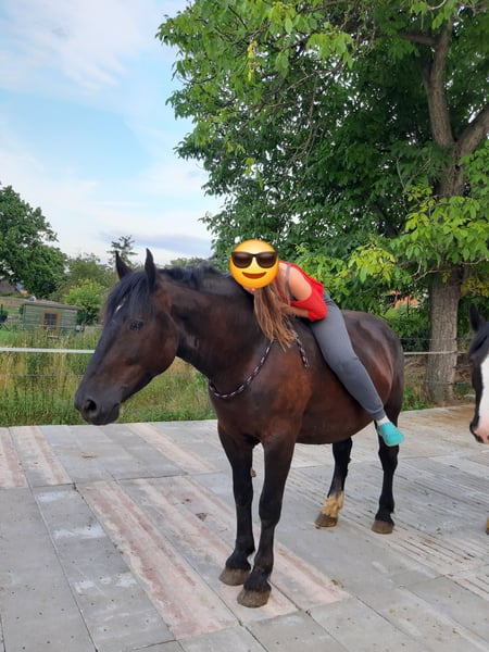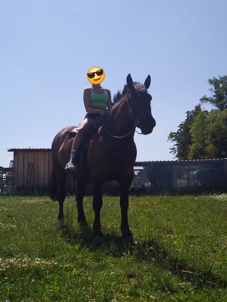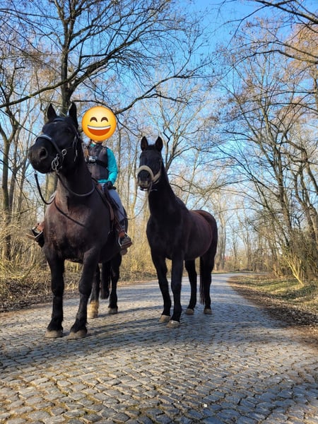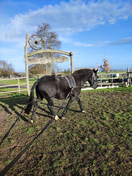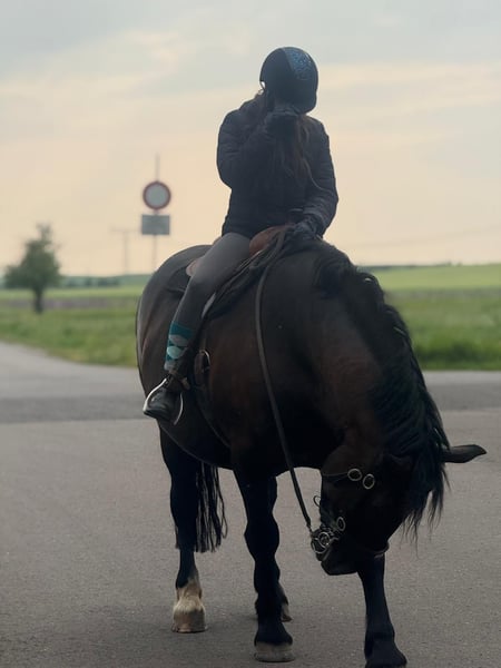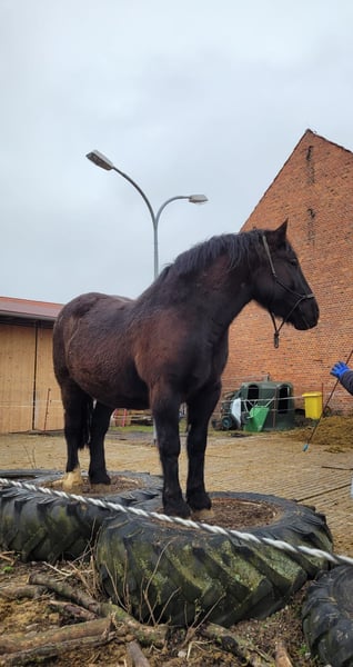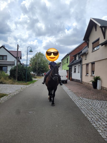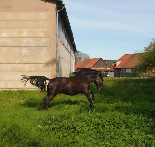 Zarak KEINE RATENZAHLUNG/KEIN TAUSCH/KEINE ZUR VERFÜGUNGSTELLUNG Bitte überlegen Sie vorher, ob die Zeit und die finanziellen Mittel auch zur Verfügung stehen, dies erspart uns Allen viel Aufwand. Zum Verkauf steht unser prachtvoller Zarak (gesprochen Scharak). Zarak ist ein polnisches schweres Warmblut mit wunderschönen Gängen und gutem Schwung. Ein absoluter Blickfang. Er läuft Barhuf, ist regelmäßig entwurmt und geimpft. Zarak ist sehr lernwillig im Umgang und will auch beschäftigt werden. Er ist verladefromm, schmiedefromm, zaunsicher, lässt sich geduldig anbinden, putzen, waschen und satteln. Zarak wurde auf dem Platz in der Halle und im Gelände gearbeitet. Im Umgang braucht Zarak klare Führung aus erfahrener Hand. Hat er einmal Vertrauen gefasst, geht er für und mit seinem Menschen durchs Feuer. Zarak ist ein Kasperkopf, aber kein Kinderpferd. Rassebedingt gilt er als Gewichtsträger. Zarak kam 3-jährig (laut Pass 5-jährig) über einen Händler zu uns. Derzeit steht sie im Offenstall in einer kleinen Herde. In den Sommermonaten steht Zarak bei uns 24/7 auf den Weiden. Boxenhaltung kennt er von den Ausbildungsställen. Zarak kennt Straßenverkehr, landwirtschaftliche Maschinen und den Umgang mit anderen Tieren. Zarak bringt keine Turniererfahrung mit. Er neigt zum leichten Ekzem an Schweifrübe und Mähnenkamm, welches wir durch frühzeitiges Pflegen und Eindecken immer gut im Zaum gehalten haben. Zurzeit wurde Zarak nicht gearbeitet und müsste entsprechend muskulär aufgebaut und angeschoben werden. Das angepasste Zubehör wird gern mit abgeben. Der Markenwesternsattel mit Bucking-Rolls, Filzpad und Lammfell-Sitzbezug wurde beim Fachmann Janin Radau Palo-Ranch gekauft. Im Weiteren sind Trense, Zaum, Halfter, Longe, Bodenarbeitsseil, Führstrick, verschiedene Decken, Putzbox und Verbrauchsmaterialien zur Pflege beim Zubehör dabei. Fotos vom Equidenpass werden auf Anfrage nachgereicht. Einer AKU spricht nichts entgegen. Wir freuen uns auf liebe, verantwortungsbewusste und erfahrene Menschen mit Herz und Pferdeverstand, denn die Entscheidung zum Verkauf fällt uns allen nicht leicht. Rasse: polnisches schweres Warmblut Geschlecht: Wallach Alter: 7 laut Dentologe, 9 laut Pass Stockmaß: ca 1,60 m Farbe: Rappe Zuchtverband: PZHK Ausbildungsstand: Bodenarbeitsausbildung und Beritt nach Horsemanship durch Janine Deinert Westerntraining, weitere Ausbildung durch angehende Trainerin C (nicht näher benannt) Preis: 7.000 VB Bitte beachten Sie, dass es sich hier um subjektive Eindrücke handelt. Die genannten Eigenschaften beruhen auf meiner persönlichen Einschätzung und stellen keine zugesicherten Merkmale dar. In einer neuen Umgebung können Verhaltensweisen beeinflusst werden.