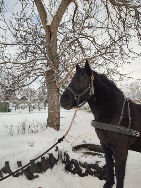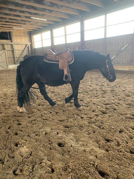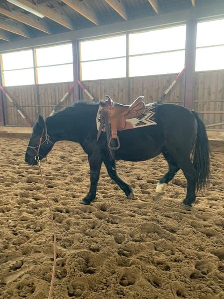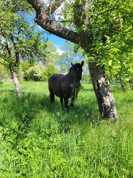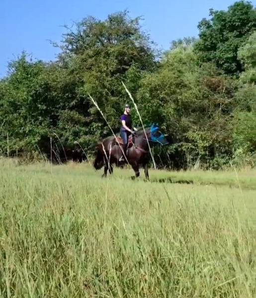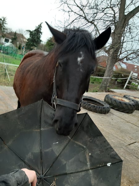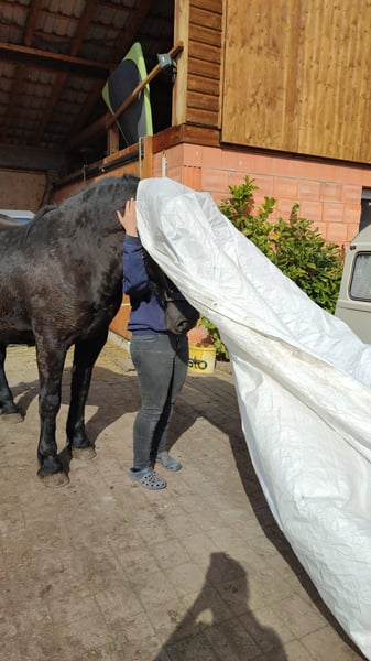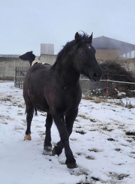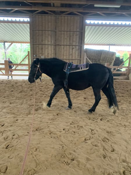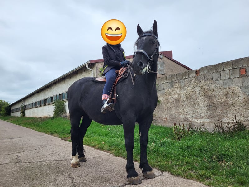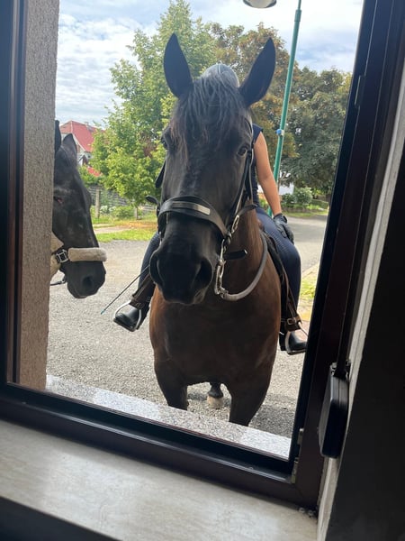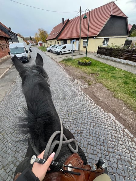 Zarak KEINE RATENZAHLUNG/KEIN TAUSCH/KEINE ZUR VERFÜGUNGSTELLUNG Bitte überlegen Sie vorher, ob die Zeit und die finanziellen Mittel auch zur Verfügung stehen, dies erspart uns Allen viel Aufwand. Zum Verkauf steht unser prachtvoller Zarak (gesprochen Scharak). Zarak ist ein polnisches schweres Warmblut mit wunderschönen Gängen und gutem Schwung. Ein absoluter Blickfang. Er läuft Barhuf, ist regelmäßig entwurmt und geimpft. Zarak ist sehr lernwillig im Umgang und will auch beschäftigt werden. Er ist verladefromm, schmiedefromm, zaunsicher, lässt sich geduldig anbinden, putzen, waschen und satteln. Zarak wurde auf dem Platz in der Halle und im Gelände gearbeitet. Im Umgang braucht Zarak klare Führung aus erfahrener Hand. Hat er einmal Vertrauen gefasst, geht er für und mit seinem Menschen durchs Feuer. Zarak ist ein Kasperkopf, aber kein Kinderpferd. Rassebedingt gilt er als Gewichtsträger. Zarak kam 3-jährig (laut Pass 5-jährig) über einen Händler zu uns. Derzeit steht sie im Offenstall in einer kleinen Herde. In den Sommermonaten steht Zarak bei uns 24/7 auf den Weiden. Boxenhaltung kennt er von den Ausbildungsställen. Zarak kennt Straßenverkehr, landwirtschaftliche Maschinen und den Umgang mit anderen Tieren. Zarak bringt keine Turniererfahrung mit. Er neigt zum leichten Ekzem an Schweifrübe und Mähnenkamm, welches wir durch frühzeitiges Pflegen und Eindecken immer gut im Zaum gehalten haben. Zurzeit wurde Zarak nicht gearbeitet und müsste entsprechend muskulär aufgebaut und angeschoben werden. Das angepasste Zubehör wird gern mit abgeben. Der Markenwesternsattel mit Bucking-Rolls, Filzpad und Lammfell-Sitzbezug wurde beim Fachmann Janin Radau Palo-Ranch gekauft. Im Weiteren sind Trense, Zaum, Halfter, Longe, Bodenarbeitsseil, Führstrick, verschiedene Decken, Putzbox und Verbrauchsmaterialien zur Pflege beim Zubehör dabei. Fotos vom Equidenpass werden auf Anfrage nachgereicht. Einer AKU spricht nichts entgegen. Wir freuen uns auf liebe, verantwortungsbewusste und erfahrene Menschen mit Herz und Pferdeverstand, denn die Entscheidung zum Verkauf fällt uns allen nicht leicht. Rasse: polnisches schweres Warmblut Geschlecht: Wallach Alter: 7 laut Dentologe, 9 laut Pass Stockmaß: ca 1,60 m Farbe: Rappe Zuchtverband: PZHK Ausbildungsstand: Bodenarbeitsausbildung und Beritt nach Horsemanship durch Janine Deinert Westerntraining, weitere Ausbildung durch angehende Trainerin C (nicht näher benannt) Preis: 7.000 VB Bitte beachten Sie, dass es sich hier um subjektive Eindrücke handelt. Die genannten Eigenschaften beruhen auf meiner persönlichen Einschätzung und stellen keine zugesicherten Merkmale dar. In einer neuen Umgebung können Verhaltensweisen beeinflusst werden.