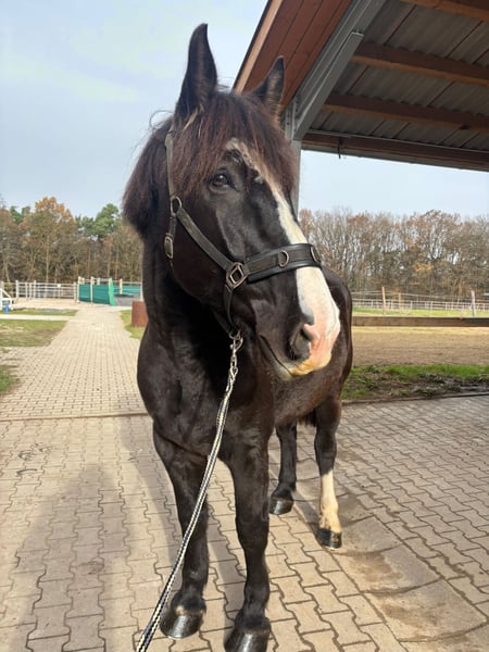 Schweren Herzens muss ich mich aus persönlichen Gründen von meinem wundervollen Pferd trennen. Jani ist 2017 geboren, ein schweres Warmblut mit 171cm. Ich haben ihn direkt vom Züchter 3 jährig bekommen. Er wurde liebevoll und mit Geduld angeritten. Ihn jetzt abzugeben fällt mir unendlich schwer, aber mir fehlt einfach die Zeit. Von uns wurde er hauptsächlich im Gelände Freizeitmäsißig geritten, hier geht er auch zuverlässig alleine ins Gelände. Er kennt aber auch Halle, Platz Roundpen ect.... und arbeitet hier immer motiviert mit. Auch für kleine Sprünge ist er zu haben. Jani ist in der Herde eher Rangniedrig. Wir wünschen uns für ihn jemanden mit Erfahrung, da er bei Unsicherheit selbst unsicher reagiert. Nie böse dem Menschen gegenüber, aber ich würde ihn trotzdem nicht als Anfänger Pferd bezeichnen. Er möchte seinem Menschen immer gefallen. Mehr Infos gerne persönlich. Er steht schon immer im Offenstall, Box kennt er aber auch, da wir zum Training immer mal wieder an einem anderen Stall fahren. Im Mai 2025 wurden die Zähne gemacht und im September war die Chiropraktikerin zuletzt da. Er war noch nie krank, würde ihn als sehr robust bezeichnen. Absolut Schmiedefromm. TA kennt er von den Impfungen, hier ist er die Ruhe selbst. Er liegt mir sehr am Herzen, ich wünsche mir einen Traumplatz für ihn. Probereiten ist jederzeit möglich. Um Reittourismus zu unterbinden, verlangen wir hierfür 35€.