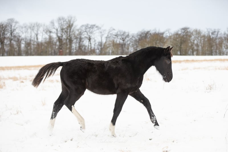 From our loving hobby breeding, we have now decided, due to a reduction in stock, to offer our heavy warmblood mare "Glanzstück," born last year. Of course, she has full papers and is already fully familiar with foal training basics. She impresses with her impeccable and absolutely loving character, which makes it very difficult for us to sell her. Born on April 23, 2025 Black (dark bay) Last year, she received her foal premium at the foal show. Very interesting from a breeding perspective, due to her old lines in her pedigree. However, we can also very well imagine her as a leisure riding and driving horse for ladies and families. Currently: see picture 10 Mother: Gundula von Dornburg (by Volontär) (second to last picture) Father: Veltin (last picture) Current photos available upon request! Phone: 015146450835 Location: Near Worbis, 37339