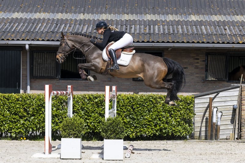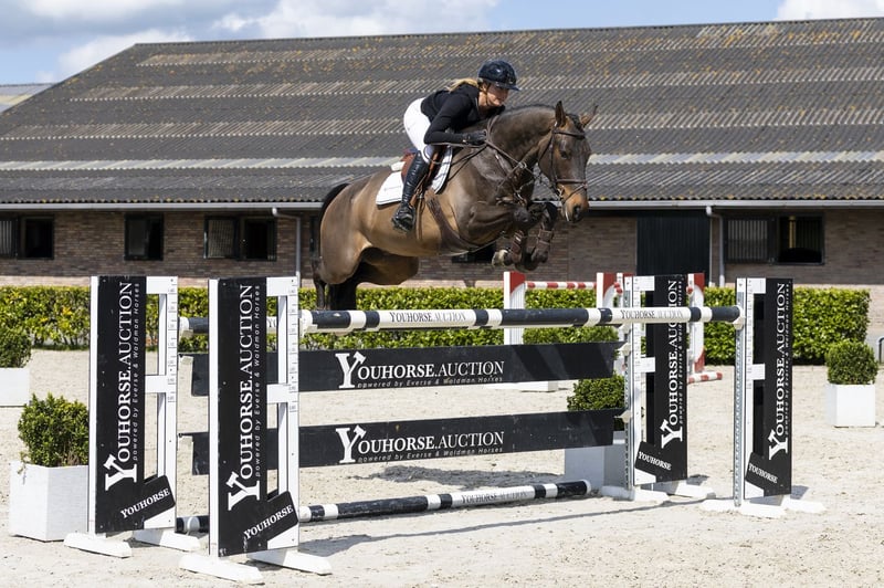 Horse with 1.40m experience. Very well-mannered and friendly in handling and easy to ride. He has a good attitude, is responsive to the aids and has a canter with sufficient balance. Over the jump he uses his body very well and is careful. The first few jumps he can feel a bit looky, but this comes from the top quality and carefulness he shows. He is honest, easy to ride and gives the rider a good feeling. Suitable for children coming off ponies, but also suitable for a good rider at 1.40m level or slightly lower. Sire Nintender competed at 1.50m level and is a son of Namelus R (1.30m) out of the line of Concorde (1.60m). He brings technique, attitude and power and has already produced several horses at 1.60m–1.70m level. Dam The dam Beaulente T.S. competed at 1.20m level and is a daughter of Numero Uno (1.55m), bringing power and jumping quality. Damline The damline is proven and produces sport at a good level. From the direct line comes Flint T.S. (1.50m). We also see Nimis himself at 1.45m level. In the second line we find Udolente (1.50m) and One Too Many (1.45m). Additionally, there are several horses at 1.30m–1.35m level such as First-Lente T.S. and Zelente Car. The family shows a consistent production of sport horses from 1.30m up to 1.50m level. Slogan: Experienced, honest and careful sport horse with a proven damline.