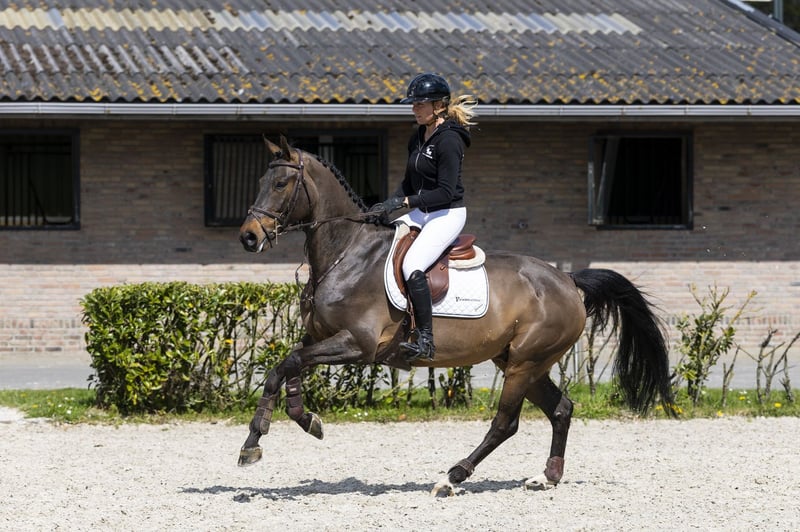 Horse with 1.40m competition experience. Very well-mannered and friendly in handling, easy to ride. He has a good attitude, responds well to aids, and maintains a balanced canter. Over fences, he uses his body very effectively and is careful. His first few jumps may appear a bit hesitant, but this stems from his high quality and careful nature. He is honest, easy to ride, and gives the rider a confident feeling. Suitable for children transitioning from ponies, but also appropriate for a skilled rider at 1.40m level or slightly below. Sire Nintender competed at 1.50m and is a son of Namelus R (1.30m), out of the line of Concorde (1.60m). He brings technique, attitude, and power, and has already produced several horses competing at 1.60m–1.70m. Dam The dam, Beaulente T.S., competed at 1.20m and is a daughter of Numero Uno (1.55m), contributing strength and jumping quality. Damline The damline is proven and consistently produces sport horses at a good level. From this line, we see Flint T.S. (1.50m). Nimis, at 1.45m, also comes from this line. In the second generation, there are Udolente (1.50m) and One Too Many (1.45m). Several other horses from this line, such as First-Lente T.S. and Zelente Car, compete at 1.30m–1.35m. The family demonstrates a consistent record of producing sport horses from 1.30m up to 1.50m. Slogan: Experienced, honest, and careful sport horse with a proven damline.