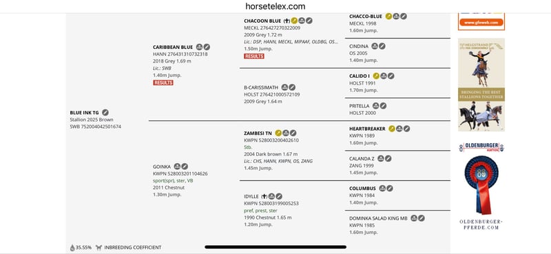 🌟Blue Ink TG🌟 E. Carribean Blue 1427 - Zambesi TN Colt,, Blue Ink TG, with fantastic looks, lovely attitude that moves really nicely and has a whole line of top horses behind him. Bred to get to the top. Made, born and lives at Hagård horse farm in Ambjörnarp where he can also be seen. Blue Ink's father, Caribbean Blue 1427, won the four-year-old championship in Falsterbo, Champion of the Youngsters, went to the final of the Young Horse World Championship, won the Stallion Trophy Flyinge and then also the six-year-old Final in Scandinavium. Grandfather Chacoon Blue - Grandfather's father Chacco Blue The mother, Goïnka, competed up to 1.30 GP with placements and wins. She also has a full sister who competed 1.35. Grandmother Idylle competed 1.20 before she entered the breeding stall. Idylle has since sired several difficult class horses, including Sterrehof's Edinus (1.60) Undiamo (1.45) Aminka (1.50) Catinka19 (1.40) and Vanda Vuitton (1.45). Grandmother's mother; Dominka Salad King MB (1.60) has also left Zippit (1.60) Untouchable (1.35) Tominka (1.35) and Just you (1.30). Grandfather Zambesi TN himself went to a difficult class but also has five approved sons, including Fabregas (1.60) and Fruselli (1.60) and in addition to that sixty offspring who compete 1.40 jumping or higher. Zambesi TN's mother, Calanda Z, competed internationally 1.40 and grandmother Alanda competed in 1.50. Grandfather Columbus (Lucky Boy XX) himself went 140 and has a lineage that is lined with high-performing jumping horses and has also left prominent competition individuals in many ranks. For more information, please contact seller.