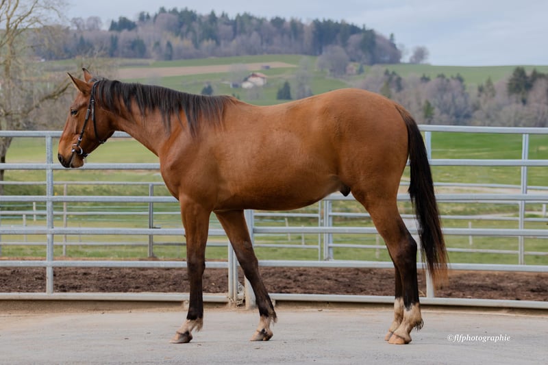Zum Verkauf steht ein am 22.04.2024 geborener, äußerst typvoller, der in puncto Abstammung und Auftreten keine Wünsche offen lässt. Pedigree der Extraklasse Vater: Von Chacco IXE (v. Chacco Blue) – Er verkörpert die Kraft und das Springvermögen seines weltberühmten Vaters und gibt diese Leistungsbereitschaft direkt weiter. Mutter: Quantic (v. Quick Star) – Über den legendären Quick Star bringt sie Schnelligkeit, Reflexe und die nötige „Vorsicht“ am Sprung mit in die Anpaarung. Exterieur & Charakter Korrektes Fundament: Cuando besticht durch ein harmonisches Gebäude und eine bereits jetzt erkennbare Athletik. Bewegungsqualität: Drei sehr gute Grundgangarten, wobei besonders die Bergauf-Galoppade seine Springpferde-Qualitäten unterstreicht. Wesen: Er zeigt sich im Umgang dem Alter entsprechend neugierig, menschenbezogen und nervenstark. Er kennt das Fohlen-ABC und ist bestens sozialisiert. Fazit: Cuando ist eine Offerte für den anspruchsvollen Springreiter oder Züchter, der ein Nachwuchspferd mit internationalem Leistungsblut für die Zukunft sucht.