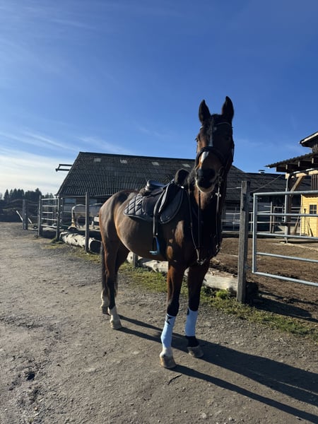 With a heavy heart, I am looking for a new home for my 17-year-old Swiss Warmblood mare, as we unfortunately no longer connect well. She is comfortable riding alone in the terrain as well as in a group, sometimes a bit cautious, but generally well-behaved. She has minor physical issues that have been treated; therefore, I am seeking someone who is primarily interested in recreational riding and enjoys groundwork and hacking. She can also be used as a lead horse. No sporting ambitions are desired. Her stomach has been treated, and she should continue to have 24-hour hay access and be fed grain-free. She tolerates 24-hour hay. Currently, she is housed in a box with outdoor access. She is turned out on pasture with another horse. I am looking for a place where she can have plenty of turnout; an open stable would also be an option for me. Clear priority: space over price. For further information, please feel free to send a private message. ☺️