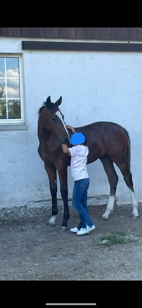 Schweren Herzens muss ich leider mein wunderschönes und sehr liebevolles Hengstfohlen verkaufen. Dantexx LM CH ist ein außergewöhnlich typvolles und kräftiges Hengstfohlen mit erstklassiger Abstammung. Sein Vater Duplexx ist ein sportlich hoch erfolgreicher Hengst, der sowohl im Springen in der Vielseitigkeit als auch in der Dressur siegreich bis zur Klasse S ist. Dantexx wurde bei uns im Stall geboren und überzeugt seit seinem ersten Lebenstagen durch Präsenz, Ausdruck und hervorragende Bewegungsqualität – insbesondere seine elastische, kraftvolle Galoppade sticht hervor. Neugierig, menschenbezogen und freundlich im Umgang - ein Charakter, den man einfach gernhaben muss. Auch Kinder und andere Tiere mag er sehr und ist immer neugierig. Seine Mutter Cantara CH, eine Tochter des international erfolgreichen Cartani 4, war mit mir persönlich bis 125 cm in Springprüfungen erfolgreich unterwegs. Sie war eine zuverlässige und lehrreiche Partnerin mit großem Kämpferherz im Parcours und einem unglaublich liebevollen Charakter. Mit dieser leistungsstarken und bewährten Genetik bringt Dantexx exzellente Voraussetzungen für eine Karriere im Spring-, Vielseitigkeit- und Dressursport mit oder auch als liebevolles Familienmitglied im Freizeitbereich. Für ihn suche ich einen Bestplatz, wo man ihm möglichst viel bieten kann und er später nicht nur als Sportgerät dient. Ich kann auch nach dem Kauf sehr gerne helfen, wenn es um die Fohlenweide und später um die Ausbildung geht, da habe ich top Adressen. Auch bei anderen Fragen oder Anliegen stehe ich natürlich später immer zur Verfügung und helfe gerne. Bei Interesse und Voranmeldung, kann man ihn und seine Mutter gerne bei uns im Stall besuchen kommen. Preis: 7‘500.- CHF VHB (Platz vor Preis!) Standort: Windlach ZH