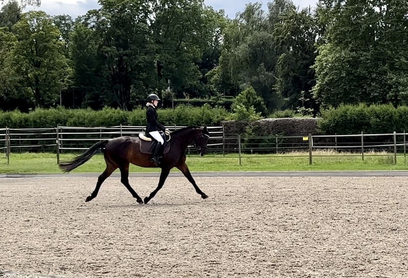 Zum Verkauf steht eine 11-jährige Stute, ideal für den ambitionierten Freizeitreiter, der gelegentlich noch kleinere Concours bestreiten möchte. Sie ist sehr gut ausgebildet in der Dressur sowie im Springen. Delaja wäre auch gut geignet als Lizenz Pferd. Sie hat die Dressurlizenz und die Springlizenz absolviert und es hat ihr stets Freude bereitet jemanden durch die Lizenz zu tragen. Aufgrund eines kleinen Befunds ist sie nicht mehr für den höheren Sport vorgesehen, für Freizeit, Training und kleinere Turniere jedoch bestens geeignet. Im Umgang wie auch unter dem Sattel ist sie absolut brav – ein echtes Verlasspferd und ein wertvoller Lehrmeister. Sie möchte ihrem Menschen immer gefallen, ist klar im Kopf und vermittelt viel Sicherheit. Zudem liebt sie es zu schmusen und im Mittelpunkt zu stehen, was sie auch im Alltag zu einer ganz besonderen Partnerin macht.