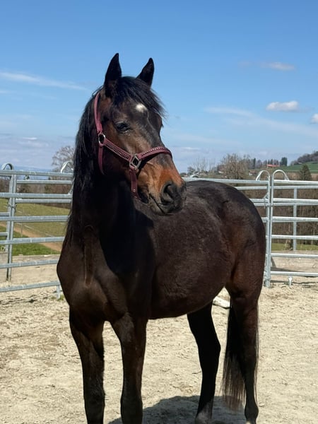 Für unsere 2 jährige Stute suchen wir ihr zu Hause. Amy-Su geboren 2024 ist ein tolles junges Pferd. V: Zoom, MV: Riccio. Sie kennt das Fohlen ABC und Bodenarbeit wird mit Ihr schon dem Alter entsprechend gemacht. Momentan steht Sie im Kanton Freiburg auf einer Fohlenweide. Diese kann auf Wunsch übernommen werden.