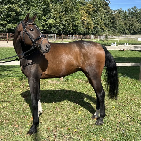 Zum Verkauf steht ein beeindruckender Wallach, geboren im Jahr 2015. Dieser charmante Braune besticht nicht nur durch sein ansprechendes Äußeres, sondern auch durch seine bemerkenswerte Veranlagung in der Dressur. Dieser talentierte Wallach überzeugt mit seinen guten Grundgangarten und seinem ausgeglichenen Wesen. Er ist der ideale Partner für ambitionierte Reiter, die Wert auf Qualität und Zuverlässigkeit legen. Sein eleganter Bewegungsablauf und seine Lernbereitschaft machen ihn zu einem wahren Vergnügen im Viereck.