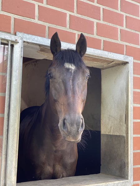 „Ludwig“ ist ein wunderschöner, dunkelbrauner aktuell 10-jähriger Wallach, den ich schweren Herzens aufgrund von Zeitmangel verkaufe. Er ist ca. 1,74 m groß und im Umgang ist er ein sehr liebes Pferd: Tierarzt, Hufschmied, Zahnarzt, Verladen, alleine zum Turnier, tägliche Arbeiten alles kein Problem. Er kennt weder treten noch beißen und ist auch auf der Wiese mit seinem Wiesenpartner verträglich und das schmusigste Pferd am Stall. In neuen Situationen zeigt er sich oft nervenstark und gelassen. Ich verkaufe Ludwig dennoch nicht als reines Anfängerpferd, nicht weil er das nicht brav macht, sondern weil er trotz seines sehr lieben Wesens, einen Reiter braucht, der ihn weiterhin fördert und fordert (sonst wird er eher triebig und meint, er müsste nix machen). Aktuell ist er in der Dressur A-platziert, beherrscht aber bereits L-Lektionen. Zum Springpferd ist er nicht geboren, aber kleine Cavalletis schafft auch er ;-) Generell liebt er die Abwechslung. Nur reine Dressurarbeit jeden Tag fände er langweilig; Besonders ausreiten, betüddeln, usw. liebt er und das wünsche ich mir auch für ihn. Täglicher Paddock bzw. Wiesengang ist ihm und mir für ihn wichtig. Am Stallgeschehen zeigt er sich immer sehr interessiert. Ludwig wird weit unter Wert aufgrund eines zufällig gefundenen Befunds verkauft, der ihn aktuell nicht beeinträchtigt - näheres dazu gerne bei Interesse. Kein Verkauf an Händler oder Schulbetrieb. Platz vor Preis (über den lässt sich mit mir immer reden, wenn er ein schönes Zu Hause bekommt)