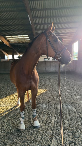 I am looking for a new and, above all, better-suited home for my chestnut gelding. Levi is 10 years old, 1.76m tall, and barefoot. - He has arthritis in the cervical spine, therefore he is for sale as a companion horse or can be ridden conditionally. - I would like someone for Levi who has experience with horses and can provide him with security in handling, as he is a cuddly and curious guy who is up for any nonsense. - I prefer an open stable system, also due to the diagnosis, but no housing with mares is possible. I have equipment that can be taken over (halter, bridle, blankets). Home before price. It is important to me that he has a nice new home where he can be happy and content and grow old.