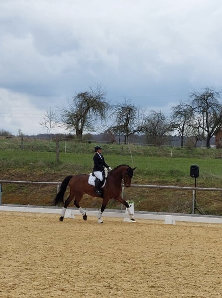 Fredl is trained up to M-level and has achieved placements at that level; he also has numerous top finishes in L-level competitions. In 2024, he was successfully competed by an amateur rider in A and A** classes. Due to pregnancy and subsequent parental leave, he is not currently being actively promoted, so we are now seeking a suitable new home for him.