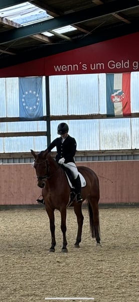 With a heavy heart, I am selling my loyal friend and sports partner Delano to a new, loving home where he will be supported as he deserves due to time constraints. Delano is a true dependable horse and always wants to please his rider. He impresses with three very good basic gaits and is placed in dressage up to A**, mastering L-level exercises and already jumping changes, although they are not yet fully solidified. He has both dressage and jumping genes, but he has not been further trained in jumping and is only regularly ridden over gymnastic jumps. However, he brings a lot of joy to this and would certainly excel in jumping with the right support. Above all, he stands out for his loyal, affectionate, and cuddly nature. He is very people-oriented and can also go out alone. Important to know: he is not a classic beginner's horse. He needs a rider who can give him trust and security - once he has this trust, he exceeds expectations and gives his person everything. A loyal partner for the ambitious leisure rider or competition rider looking for an honest and willing friend. Since he is very dear to me, I am only selling him to the very best hands! I will send videos upon request. Please only contact me if you are SERIOUSLY INTERESTED. This is a private sale.