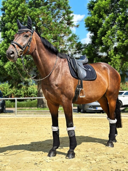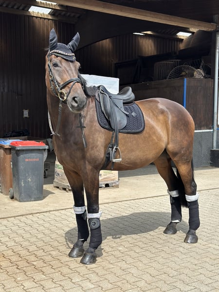 Luigi ist mein erstes Pferd gewesen und meine ganz persönliche große Liebe. Ich gebe den kleinen Mann nur schweren Herzens und leider aus finanziellen Gründen ab. Lu ist ein verschmuster und sensibler Schatz. Er ist nicht nur bildschön, sondern hat auch einfach einen tollen und witzigen Charakter. Ich bin mit ihm keine Turniere gegangen, sondern habe mit ihm nur mein kleines Abzeichen gemacht. Ich selbst war nie Turnier ambitioniert. Ich habe Luigi damals fünfjährig mit Shivering gekauft. Das macht allerdings keine Probleme, außer manchmal beim Hufschmied. Da kann er sein hinteres linkes Bein schlechter geben. Mit Geduld funktioniert das aber auch. Letztes Jahr hatte er einen Knorpelschaden, weswegen er jetzt ein Jahr Pause hatte und wieder antrainiert wird. Ich saß seitdem ein paarmal drauf. Beim reiten war er immer lieb. Vom reiten her ist Lu sehr, sehr fein in der Anlehnung und fein in den Hilfen. Er darf nicht mit viel Druck geritten werden, da er sonst relativ schnell in Stress gerät. Er ist einfach ein sensibler Riese. Aufgrund des Knorpelschadens darf er nicht mehr gesprungen werden und auch keine harte Dressurarbeit abverlangt werden. Ich selbst bin freizeitmäßig Dressur geritten, ab und zu gesprungen und bin viel in den Wald gegangen. Ich suche für Luigi ein neues Zuhause und eine liebevolle Person, der ihn so nimmt, wie er ist und ganz viel Liebe und Kuscheleinheiten schenkt. Er ist reitbar, auch in Zukunft, aber eben nur für die Freizeit gedacht. Mit dem Verkauf strebe ich keinsten Falls Gewinn an, sondern suche nur die allerbesten Hände für meinen kleinen Schatz! Wenn du Luigi kennenlernen möchtest, komm gerne vorbei und besuche uns! Ruf mich gerne an, oder schreib mir einfach eine nette Nachricht auf WhatsApp: 015751056597 Wir freuen uns auf dich!