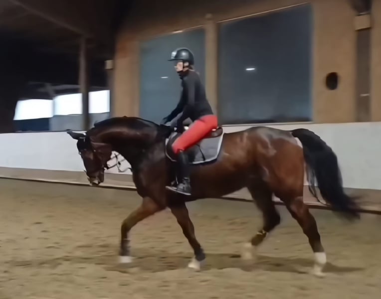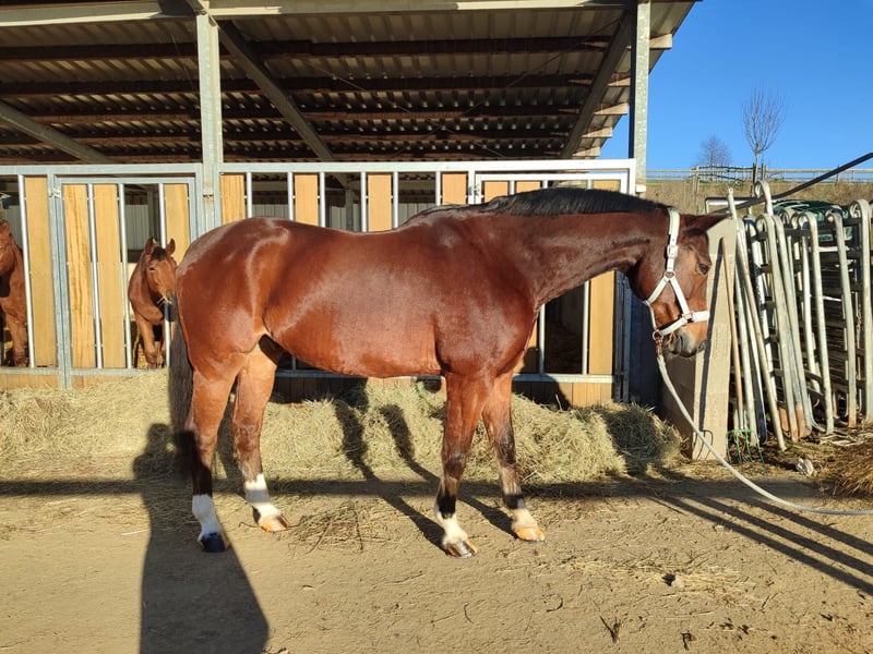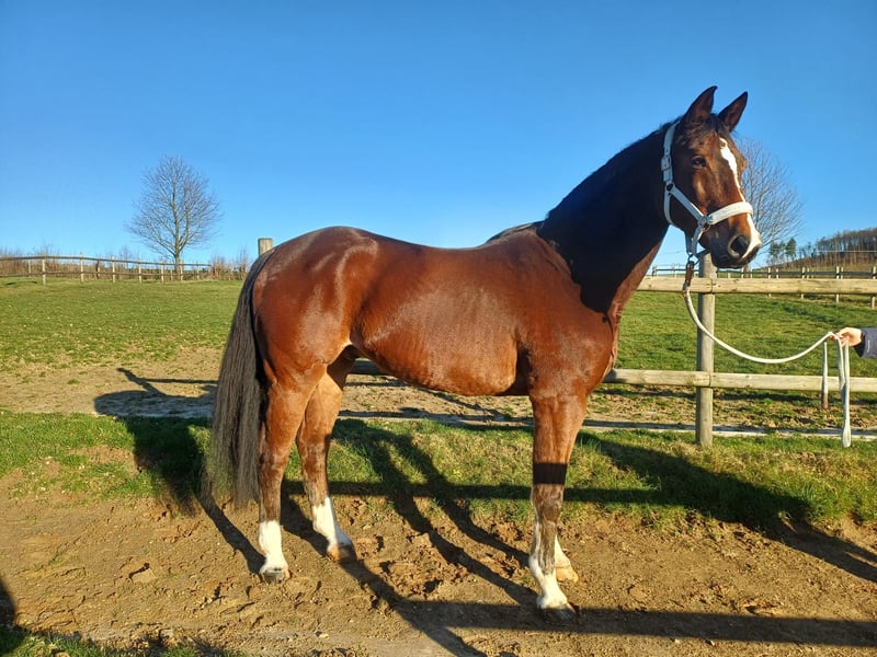 V: Balous Bellini x MV: Grand Coeur, Westfale Zum Verkauf steht dieser wunderschöne, sympathische Wallach mit bester Abstammung, 3 sehr guten Grundgangarten, sowie viel Springvermögen. „Balous Baron“ ist unterm Sattel, sowie an der Hand ein optisch auffallendes, sehr imposantes Pferd. "Balous Baron" ist ein sehr sympathischer, wunderschöner, im hengsttyp stehender 15 jähriger Wallach mit einem Stockmaß von 1,72m. Trotz seines Alters ist er total unverbraucht und zählt auf gar kein Fall zum alten Eisen. Er wurde bei seinem Züchter geboren und lebte bis vor kurzem immer dort. Er wurde bis ca. 8 jährig regelmäßig geritten, dann nur noch sporadisch. Nun ist sein Züchter im hohen Alter verstorben und der Wallach ist jetzt seit 6 Wochen bei mir. Beim Reiten ist er ein Traum mit Schwung und Go, was absolut händelbar ist. Seine Grundgangarten sind überdurchschnittlich, besonders der Trab mit seiner tollen, aktiven Hinterhand. Unterm Sattel macht er richtig was her und lässt seinen Reiter sehr gut aussehen. Kein Buckeln, kein Durchgehen. Aufgrund seiner sensiblen Zucht und fehlender Erfahrung ist er zum Reiten nicht für Anfänger geeignet. Im Umgang ist „Balous Baron“ sehr gut erzogen und ein absoluter Schatz. Mit seinen Artgenossen ist er absolut sozialverträglich und freundlich. Er kennt Weide, Paddock, Führmaschine, und longieren lässt er sich richtig gut. Bei mir wohnt er in einer Fensterbox mit täglichem Paddock-Auslauf mit seinem Kumpel, geht zusätzlich Führmaschine, wird geritten und gesprungen. Für diesen zärtlichen, liebevollen, sympathischen Wallach wünsche ich mir ein gutes Zuhause mit viel Abwechslung und Auslauf. Freue mich auf nette Anfragen. Bei Interesse sende ich Ihnen gerne einige Videos per Whatsapp zu. Frau Jana, Mobil: 0170-9 333 000 Verkauf erfolgt im Auftrag.