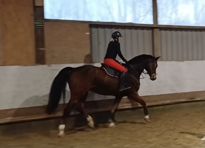 V: Balous Bellini x MV: Grand Coeur, German Riding Pony In vendita questa splendida, simpatica gelding con genealogia di prima scelta, tre ottimi passi di base e molto talento per il salto. „Balous Baron“ è un cavallo molto appariscente, sia sotto la sella che a mano, con un aspetto imponente. „Balous Baron“ è un gelding molto affabile, bellissimo, di circa 15 anni, di statura 172 cm, in stile stallone. Nonostante l’età, è ancora completamente in forma e assolutamente lontano dall’essere un “cavallo vecchio”. È nato dal suo allevatore, dove ha vissuto fino a poco tempo fa. È stato regolarmente montato fino a circa 8 anni, poi solo in modo sporadico. Recentemente il suo allevatore, ormai anziano, è deceduto e il gelding è con me da sei settimane. Montato, è un sogno, con energia e entusiasmo, ma assolutamente maneggevole. I suoi passi di base sono sopra la media, in particolare il trotto, con una splendida, attiva posteriorità. Sotto la sella, si presenta molto bene e fa risaltare il cavaliere. Niente buck, niente passaggi irregolari. A causa della sua genealogia sensibile e della mancanza di esperienza, non è adatto ai principianti. In maneggio, „Balous Baron“ è molto ben educato e un vero tesoro. È socialmente compatibile e amichevole con gli altri cavalli. Conosce il pascolo, il paddock, la longe e si lascia facilmente longare. Attualmente vive in box con finestra, con uscita quotidiana in paddock insieme al suo compagno, fa anche lavoro alla longe, viene montato e saltato. Per questo cavallo dolce, affettuoso e simpatico, desidero trovare una buona casa con molte attività e spazi aperti. Sono aperta a richieste gentili. Se interessati, posso inviare alcuni video tramite WhatsApp. Sig.ra Jana, Cell: 0170-9 333 000 La vendita avviene su incarico.