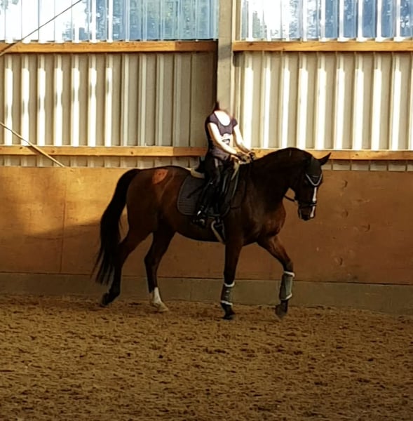 Te koop: een bruine Westfaler ruin, geboren in 2009, met een stokmaat van 168 cm. Het paard is een betrouwbare metgezel voor de vrije tijd, die overtuigt door zijn evenwichtige karakter en veelzijdigheid. De ruin is goed bereden, vriendelijk in de omgang en geschikt voor ontspannen buitenritten, grondwerk en dressuurtraining. Er wordt gezocht naar een liefdevol thuis voor de komende jaren... ook als bijzetter, die ondanks artrose gereden kan worden. Altijd direct veterinaire zorg ontvangen... geen verborgen aandoeningen. Tot nu toe stond hij altijd in een box, overdag op een paddock of weide. Ik heb er echter altijd op gelet dat hij op houtspanen staat en hooi krijgt, omdat hij anders snel begint te hoesten. In een stal met veel frisse lucht en weinig stofontwikkeling zou dit echter geen probleem moeten zijn en hem niet beperken.