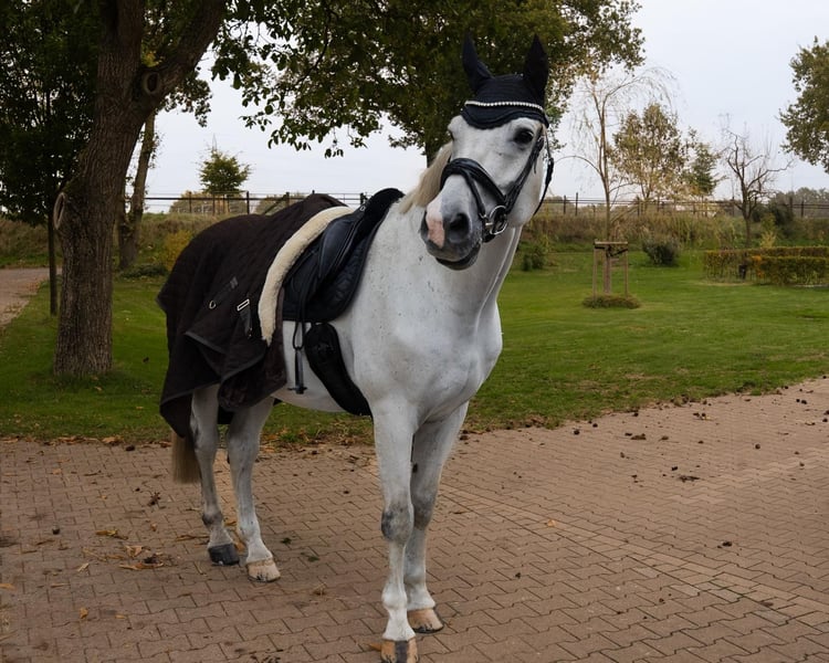 Westfalian grey gelding – loving leisure and jumping partner with charm Casanova is a 16-year-old Westphalian gelding (born January 24, 2009) with a height of approximately 170 cm. He is a very gentle, affectionate grey horse who enjoys human company and always presents himself in a friendly manner. Casanova was trained up to M* level by the breeder, then in the second hand up to L, and has mainly been ridden by me at A* to A** level. He easily handles individual jumps up to about 130/135 cm. He works with motivation, is familiar with ground work, dressage, lunging, double longe, jumping, hacks, and walks. Different riders pose no problem for him. In the field, he is well-behaved but a bit shy when ridden alone and feels much more comfortable in company, preferring to follow behind another horse. In dressage, he finds it difficult to maintain a consistent connection and to swing properly through the body, so he needs a sensitive and patient rider. In handling, Casanova is completely uncomplicated: he is used to being tied up on either side, both at the grooming area, in the stable aisle, and in the washbox. He clearly enjoys grooming, washing, clipping, and daily preparation. He is very well-behaved at the blacksmith and has always been shod with full shoes. On the pasture or paddock, he gets along well both alone and with other horses. He has shown no vices such as rearing, kicking, or bucking with me. He is generally healthy. Unfortunately, I can no longer ride due to an illness, so Casanova is looking for a new home. He will only be placed in good hands, but as a rule: location before price! Due to his age, Casanova is ideally suited as a reliable leisure partner who still enjoys participating in competitions and has always behaved well there. He is located in the Kleve district and is offered for €9,500 VB. Interested? Please contact us at +49 177 4635428. To prevent ride tourism, we charge €30 per trial ride, which will be credited upon purchase.