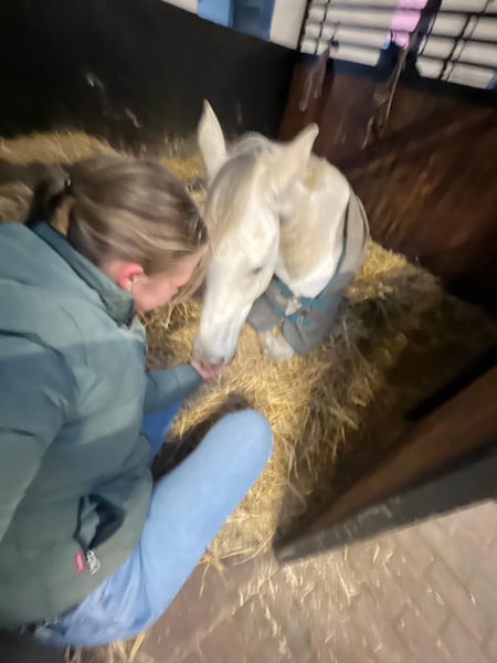 Westfaalse schimmelhengst – liefdevolle vrijetijds- en springpartner met charme Casanova is een 16-jarige Westfaalse hengst (geboren op 24-01-2009) met een stokmaat van ongeveer 170 cm. Hij is een zeer vriendelijke, knuffelige schimmel die geniet van nabijheid tot mensen en zich altijd vriendelijk gedraagt in de omgang. Casanova is bij de fokker tot M*-niveau gesprongen, daarna in tweedehandsgebruik tot L-niveau, en bij mij voornamelijk ingezet op A*- tot A**-niveau. Enkele sprongen tot ongeveer 130/135 cm gaat hij zonder problemen aan. Hij werkt gemotiveerd mee, kent grondwerk, dressuur, longeerwerk, dubbele longe, springen, buitenritten en wandelingen. Verschillende ruiters vormen geen probleem voor hem. In het terrein is hij braaf, maar gaat hij alleen wat schuchter, en voelt hij zich in gezelschap duidelijk prettiger, waarbij hij liever achter een ander paard loopt. In de dressuur vindt hij het moeilijk om een constante aanleuning te behouden en echt door het lichaam te schwingen, daarom heeft hij een gevoelige en geduldige ruiter nodig. In de omgang is Casanova volledig unkompliziert: hij kent het om aan beide zijden vastgebonden te worden, zowel op de poetsplaats, in de stalgang als in de wasbox. Hij geniet zichtbaar van poetsen, wassen, scheren en het dagelijkse klaar maken. Bij de hoefsmid is hij zeer braaf en draagt hij sinds jaar en dag volledig hoefbeslag. Op de wei of in de paddock kan hij zowel alleen als met andere paarden goed uit de voeten. Ongewenst gedrag zoals steigeren, trappen of bokken heb ik bij hem niet gezien. Gezondheidsmatig is hij in principe fit. Hij heeft een stofallergie, maar kan probleemloos met nat of gestoomd hooi omgaan en vertoonde sinds april 2025 ook geen afwijkingen bij normaal droog hooi uit de hooibak. Daarnaast heeft hij door een ongeluk als veulen een scheef neusbeen, wat een ademgeluid veroorzaakt, maar hem niet belemmert. Bloedgasanalyses waren ongestoord en in de goede range. Vanwege zijn leeftijd is Casanova ideaal als betrouwbare vrijetijdsgenoot, die echter nog graag aan wedstrijden meedoet en zich daar altijd braaf heeft gedragen. Hij staat in de Kreis Kleve en wordt aangeboden voor €10.500, VB. Bij interesse of vragen kunt u gerust bellen naar +49 177 4635428. Om misbruik van proefritten te voorkomen, vragen wij €30 per proefrit. Deze kosten worden bij aankoop uiteraard verrekend.