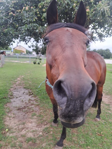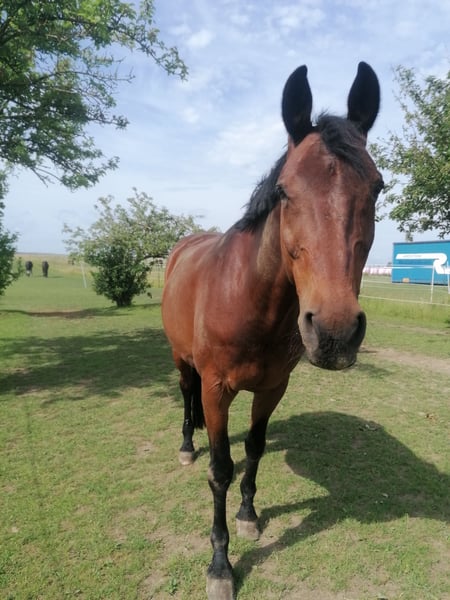 Bonjour, Pour des raisons personnelles, j'ai pris la décision, le cœur lourd, de confier mon hongre de 18 ans, Fido, à de bonnes mains. Je préférerais qu'il reste dans notre écurie (63762). Il ne doit déménager que dans une maison 5 étoiles : un abri ouvert avec pâturage et foin 24/7. Il est proposé comme cheval de loisir pur - bien qu'il ait couru des compétitions jusqu'à M* en dressage, en raison de son âge, il ne doit plus être contraint à cela. Ce n'est définitivement pas un cheval pour débutants, il a beaucoup d'énergie et quelques sauts de mouton sont possibles. Pour protéger mon cheval, je demande, en cas d'intérêt sérieux, des photos de monture et de préférence une vidéo, si possible. Bien sûr, j'ai également beaucoup à raconter à son sujet et je prends le temps nécessaire pour trouver la personne qui lui correspondra le mieux ! Je peux envoyer d'anciennes photos et vidéos de lui datant d'environ 3 ans - il est actuellement monté en loisir en extérieur et je n'ai pas de vidéos récentes. Les photos de terrain sont actuelles :-) Que ce soit pour un achat ou une mise à disposition, cela doit être discuté individuellement. J'ai hâte d'avoir de vos nouvelles ! Cordialement, Jessica et Fido