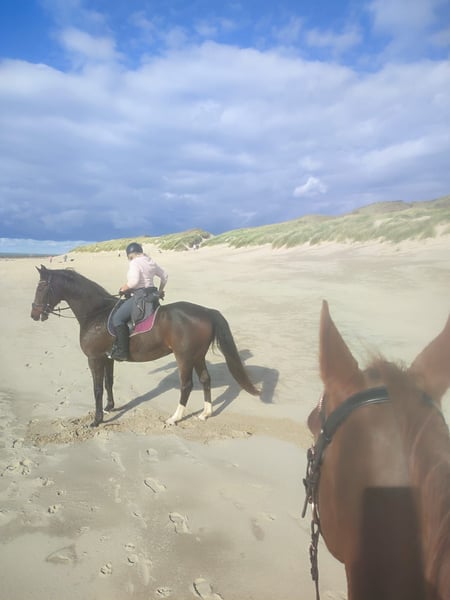 Te koop staat een uiterst betrouwbare en goedige vrijetijdsruiter, geboren in 2007 (19 jaar oud), die zich uitstekend leent voor beginners en herintreders. Dit betrouwbare paard overtuigt door zijn evenwichtige karakter en kalmte in elke situatie. Of hij nu alleen of in een groep rijdt – in het terrein toont hij zich altijd kalm, zeker in zijn passen en alert. Hij is bekend met het wegverkeer, landbouwmachines en diverse omgevingsinvloeden, en blijft daarbij rustig en altijd goed te controleren. Dit onderscheidt hem: - Zeer braaf in omgang en onder het zadel - Geschikt voor beginners en aangenaam om te rijden - Veilig en betrouwbaar in het terrein - Laadbaar en probleemloos in transport - Braaf bij de smid en dierenarts - Ook geschikt voor kleinere dressuurwedstrijden en daarbij nerveus kalm. Vanwege zijn leeftijd heeft hij af en toe kleine problemen met de botten (artrose), vooral in de rug, waardoor hij niet meer geschikt is voor het springen. Afhankelijk van het weer kan hij soms wat gevoelig reageren. Voor rustige buitenritten en lichte dressuurwerk is hij echter perfect. Hij is de ideale metgezel voor iedereen die op zoek is naar een eerlijk, ervaren paard voor ontspannen uren in het zadel of af en toe een wedstrijd. Geen sportpaard, maar een echt hartendier. Bij interesse horen we graag van u voor een persoonlijk kennismakingsgesprek. Op verzoek kan de zadel en alles wat erbij hoort worden meegekocht.