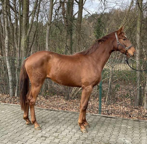 Schicker bald 3-jähriger Fuchswallach von Va Bene x Chagall Mit drei besseren GGA und einen lieben Charakter. Er wurde vor kurzem von der Sommerweide in Stall reingeholt, und kennt somit noch nicht viel. Ein tolles Nachwuchspferd mit einer Größe von 1,67m