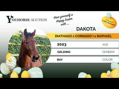 Dakota is een modern springpaard met een goede manier en kwaliteit op de sprong. Hij heeft een goede afdruk, is snel van de grond en toont zich voorzichtig. Lichtvoetig, met een goede instelling en inzet. In beweging valt zijn zeer lichtvoetige draf op en hij galoppeert mooi opwaarts, wat hem later comfortabel maakt in het rijden. Vader Diathago sprong op 1.55m niveau en is een zoon van Diamant de Semilly (1.60m Grand Prix), één van de meest invloedrijke verervers in de springsport. Hij bracht al meerdere sportpaarden op niveau, waaronder Don Lamoor (1.50m), Diathoki (1.50m) en Dia-Con-Luni (1.45m). Moeder Carina is een dochter van Cornado I (1.65m Grand Prix) en voert daarmee de sterke genen van Cornet Obolensky. Een moderne, prestatiegerichte combinatie. De moederlijn is correct opgebouwd: Don Dino – 1.30m Contract – goedgekeurde hengst Een pedigree met bewezen Grand Prix genen aan vaderszijde en een moderne, bloedgemaakte moederlijn.