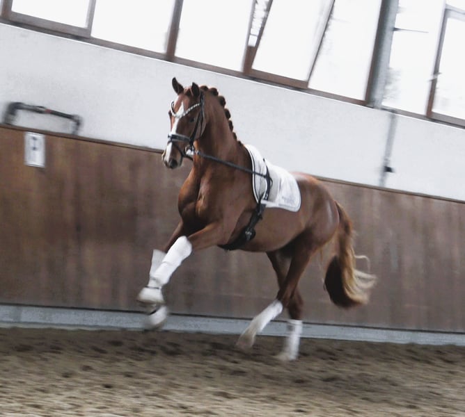 Ein 2,5 jähriger Youngster in goldener Edelrobe und wunderschöner Aufmachung! Homogene Spitzenqualität mit Dynamik und Abdruck, die ihresgleichen und fördernde Ausbilderhände mit Freude und Begeisterung für ein solches Talent sucht! Nicht nur rein äusserlich ein Goldschatz und Zugewinn in jeder Hinsicht. Guter, aktueller Tüv inkl. Rücken, Hals und Genick. Weitere Informationen gerne auf seriöse Anfrage.