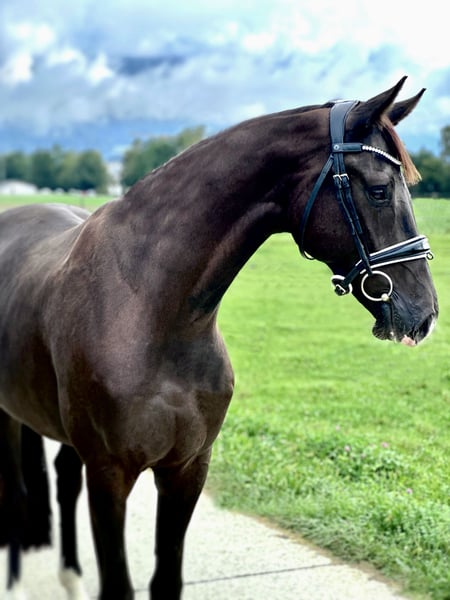 W/R/2022/ Westphalian / approx. 16.1 hh Galaxy-Ehrenpreis-Laomedon An exceptionally rideable gelding with stunning appearance and already excellent contact. This nearly 4-year-old gelding is a pleasure to work with and has a exemplary disposition. After only a short time, he was already comfortable on the open field gallop and on unfamiliar surfaces. In handling, he is more like a Labrador Retriever than a horse, loving to be groomed and caressed for hours. He has been part of a herd and is very compatible with other horses. An outstanding schoolmaster for a promising future. The trail video was recorded in spring, just three weeks after starting under saddle (!!). Afterwards, he was turned out on pasture until the end of summer. The dressage video is from October! To protect the horse’s well-being and prevent tire-kicking tourism, a trial ride costs €60, which will be fully refunded upon purchase. We also have horses that, for privacy reasons, are not listed online. Please feel free to contact us via all media channels — perhaps your dream horse is already in our stable.