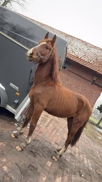 3.5-year-old gelding – alert and well-behaved With a heavy heart, I am selling my 3.5-year-old gelding. He is a very sweet, people-oriented, and mentally mature young horse who is completely straightforward in daily handling. He is familiar with: - Lunging - Saddling - Basic young horse handling and stable routines He has not yet been backed. Temperamentally, he is calm and obedient, and I can easily see him later as a wonderful leisure and trail riding horse. He has a slight roach back in the hindquarters and is therefore not intended as a sport horse. No jumping. I am looking for a suitable home for him as a leisure horse, for relaxed rides, groundwork, or as a companion. Honesty and finding the right match are very important to me. Price: €3,200 negotiable First come, first served