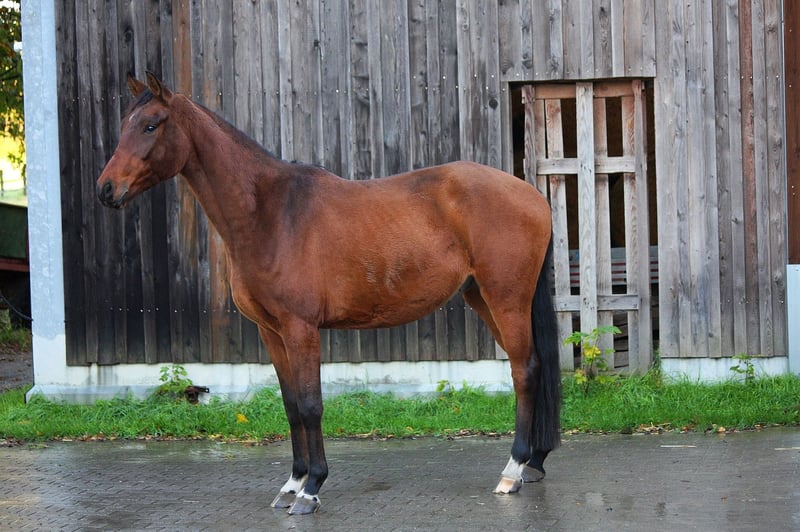 Zazou – trzyletni wałach, ojciec Zuperman, matka Fürstenball Urodzony i wychowany w odpowiednich warunkach, Zazou powoli rozpoczyna szkolenie pod siodłem i zawsze wykazuje chęć do nauki, jest spokojny i przyjemny w obsłudze. Obecnie Zazou ma około 1,64 m wzrostu, co czyni go atrakcyjnym wyborem dla pań lub dla osób przechodzących z kucyka na dużego konia. Pomimo swojego wzrostu, porusza się z dużą gracją i wyróżnia się trzema ponadprzeciętnymi chody, szczególnie zwracając uwagę na przestronny, rytmiczny krok. Dynamiczna zadnia część ciała i wyraźnie wysoka skłonność do jazdy wskazują na obiecującą przyszłość w dyscyplinie ujeżdżenia. Zazou dopiero zaczyna swoją karierę jeździecką i świetnie sprawdzi się u jeźdźców poszukujących utalentowanego młodego konia z perspektywami rozwoju. Jest: - łagodny przy transporcie - spokojny przy podkuwaniu i regularnie prezentowany u kowala - regularnie odrobaczany - poddany kontroli zębów Posiadamy aktualne zdjęcia rentgenowskie z szyją i grzbietem bez zmian patologicznych. Obiecujący młody koń do sportu lub wyższej rekreacji – z najlepszej hodowli i solidnym wyjściowym szkoleniem.