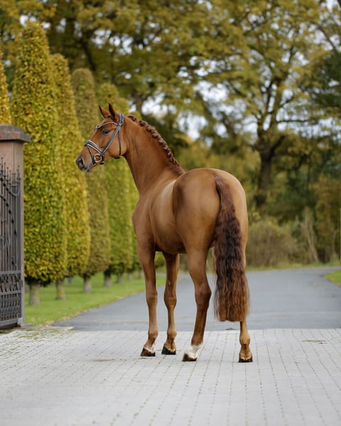 Cheval de cœur exceptionnellement calme, intrépide et doté d’un tempérament courageux, présenté dans un style sportif et moderne ! Un fox rouge noble, au caractère affirmé, avec une robe d’une couleur intense et particulièrement belle, ainsi qu’un caractère unique. Absolument prêt à performer, doté de qualités fondamentales d’élite, avec une motivation et une attitude quotidiennes. Une offre d’éducation idéale pour les ambitions élevées, qui procure simplement du plaisir. Excellent élevage, travaillé selon son développement et monté en douceur. Bonnes radiographies disponibles pour envoi immédiat.